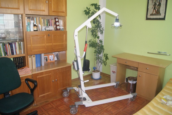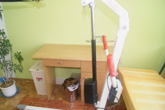 Posiadam do sprzedania używany podnośnik ułatwiający opiekę nad osobą leżącą, nie mogącą samodzielnie wstawać i poruszać się. Specjalna płachta mocowana do wysięgnika umożliwia podniesienie niepełnosprawnego w pozycji leżącej, przetransportowanie do innego pomieszczenia np. wanny w celu wykąpania.  Urządzenie posiada zasilanie akumulatorowe umożliwiające podnoszenie i opuszczanie osoby o wadze do 135 kg . Sterowanie pilotem połączonym kablowo. Urządzenie sprawne i kompletne. Cena 1000,00 zł. Odbiór osobisty  lub możliwość przywiezienia podnośnika do kupującego